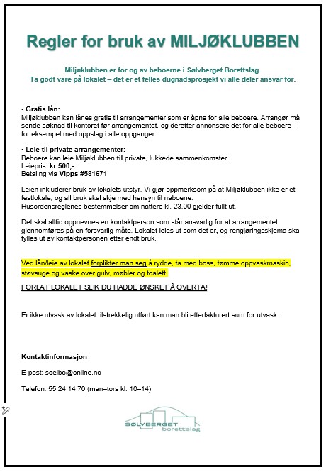 DETTE LOKALET ER KUN TILGJENGELIG FOR SØLVBERGETS BEBOERE.